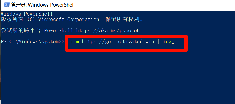 先不用知道这个链接是做什么的,往下看。irm https://get.activated.win | iex